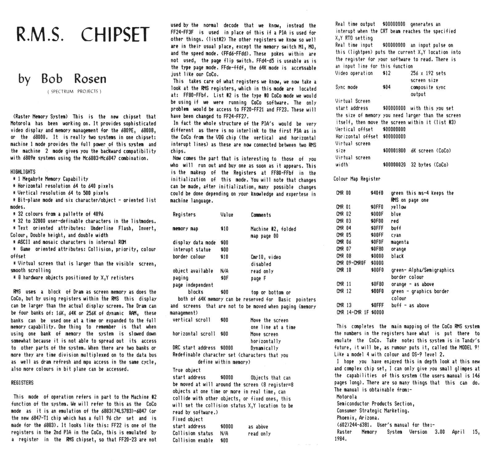 Memory System) chipset. A second article in the same issue also by Bob Rosen