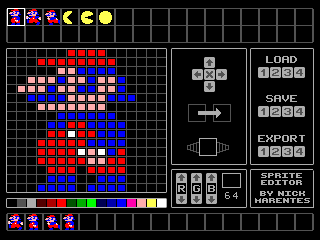 Below the magnified sprite editing window is the current 16 color