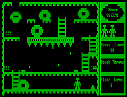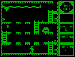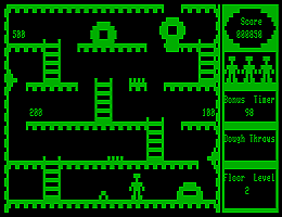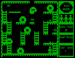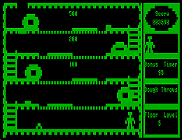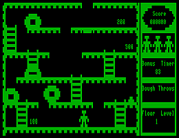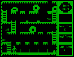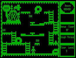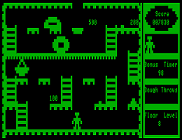 It is a platform style arcade game like the popular Donkey Kong in the arcades and featured nine different and progressively challenging levels.