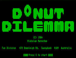 I believe Donut Dilemma to be my best TRS-80 Model 1 game and could have equalled many of the great games of that era on the TRS-80 had it been promoted in the US.