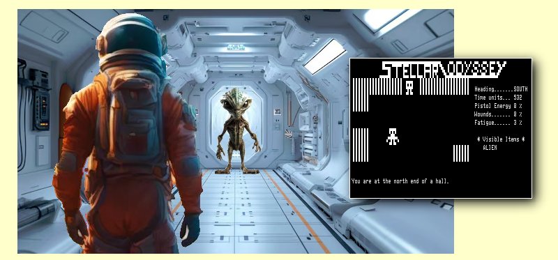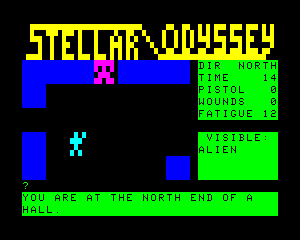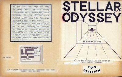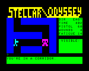 Stellar Odyssey was a hybrid adventure/role-playing game which I drew motivation from games such as Temple of Apshai and Rescue at Rigel by Automated Simulations (later EPYX).