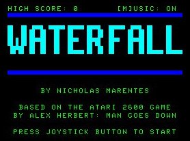 Water Fall is a simple arcade type game based on the Atari 2600 game Man Goes Down, also Spike Goes Down on the Vectrex Game Console and Down Fall for the Atari Jaguar.